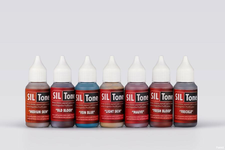 Siltone Skin Selection contains: siltone old blood 30gr, siltone fresh blood 30gr, siltone medium skin 30gr, siltone light skin 30gr siltone freckle tan 30gr, siltone blush mauve 30gr, siltone vein blue 30gr.