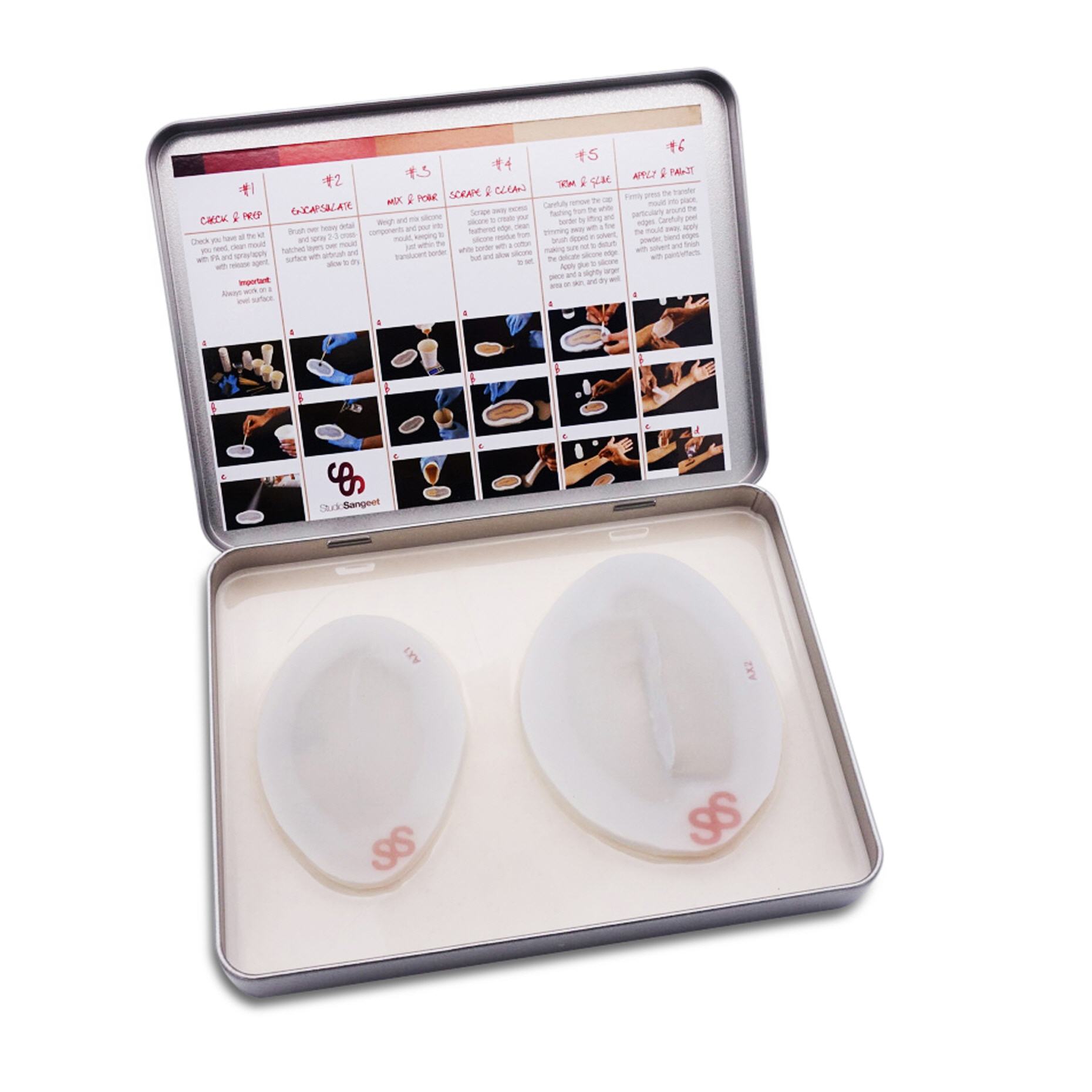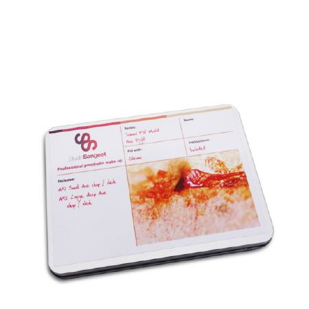 Two medium silicone moulds for laceration type woundsIncludes: AX1 – Shallow laceration from axe blade AX2 – Deep laceration from axe blade at full swing