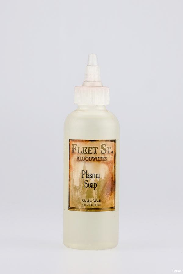 FLEET STREET PLASMA SOAP - ist eine leistungsfähige, aber sanfte Mischung aus kosmetischer Qualitäts Seife, die auch bei vielen anderen theatralischen Blut-Make-ups wirken. Hat geringe Schaumbildung. Seife, mit einem sanften Reiben aufbringen, entfernt sie alle Rückstände und Ghosting des But-Make-ups, wiederholen wenn nötig.