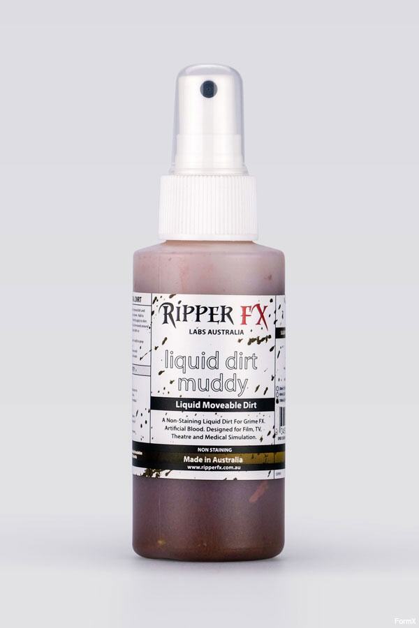 Ein flüssiger Schlamm zum Erzeugen von Schmutz- und Schmutzeffekten auf Haut und Kostüm im Boden.