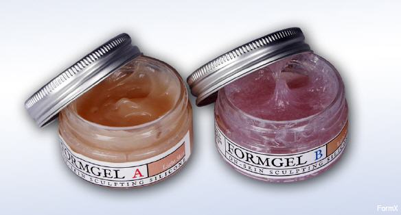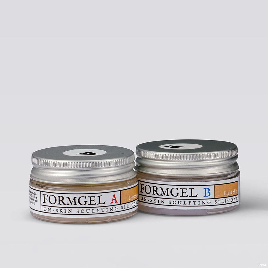 FormGel ist ein einzigartiges Zweikomponenten-Silikon für Make-up-Effekte auf der Haut. Es ist eine dicke Paste, die sich leicht mischen und auf der Haut modellieren lässt. Hat eine helle Hautfarbe und kann mit allen Arten von Make-up gefärbt werden. 25 Gramm pro Komponente und 25 Gramm pro Komponente