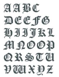 Old Letter Set Große Tätowierung. Schreiben Sie mit diesen klassischen alten englischen Buchstaben, was immer Sie wollen. Mit diesen großen Buchstaben bleiben Sie nicht unbemerkt.
