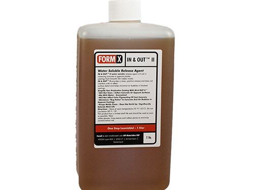 IN & OUT® II IS DILUTED WITH WATER. Mix 4 parts water to 1 part In & Out® II. Mixing can be done by hand or slow speed mixer. Do not shake or agitate as this may cause product to foam. How you dilute IN & OUT® II (amount mixed with water, coverage and frequency of application) will depend on the concrete aggregate mix and the form material you are casting into. For example, when casting concrete with a low grit/high sand content (minimal abrasion) into a polyurethane mold, the mix ratio of water to IN & OUT II® can be 4 : 1. High grit content may call for a dilution ratio of 2 parts water to 1 part release agent. Mix only amount needed for one day. Mixture may separate after 24 hours. Re-mix to a uniform consistency and apply.