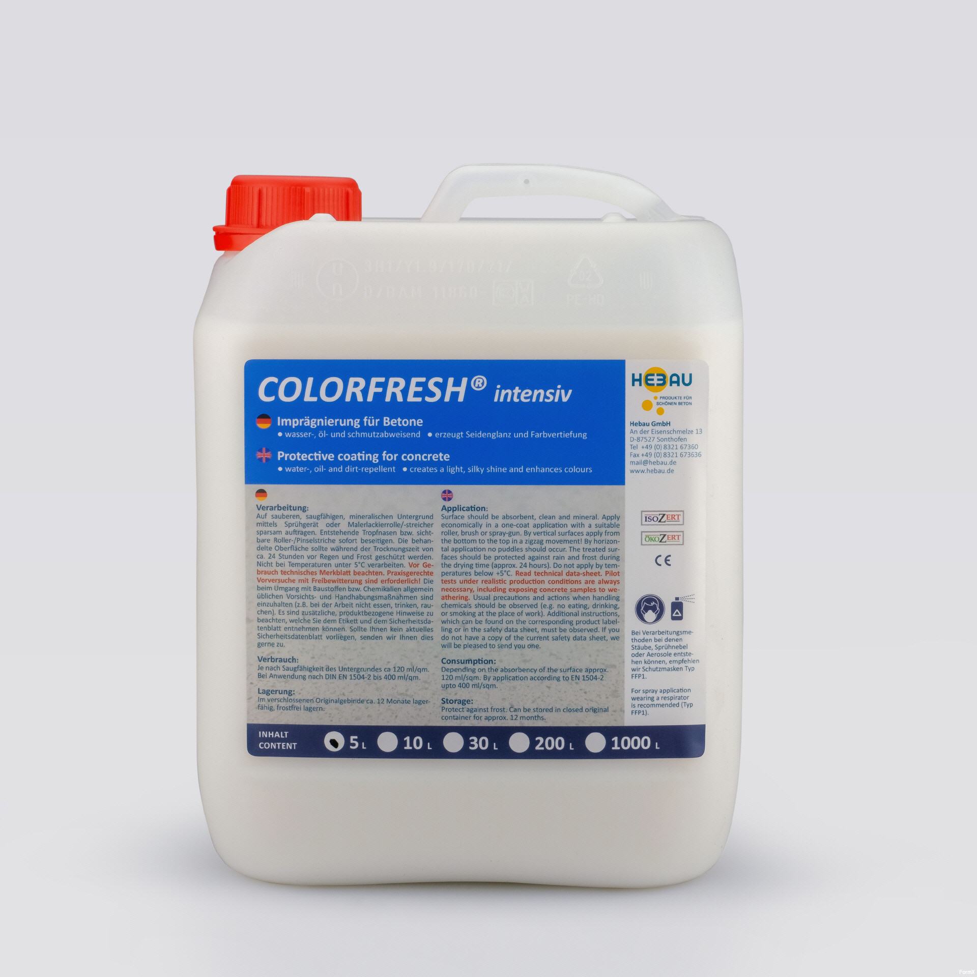 ColorFresh Intensive® ist eine Versiegelung zum Schutz von dekorativem/architektonischem/ästhetischem Beton für Wände und Böden oder Betonfertigteile, Kunststein, Pflastersteine usw., die vor Verschmutzung, Ausblühungen, Farbverlust, Korrosion, Verwitterung, Frost usw. geschützt werden müssen. Geeignet für die Anwendung im Innen- und Außenbereich.