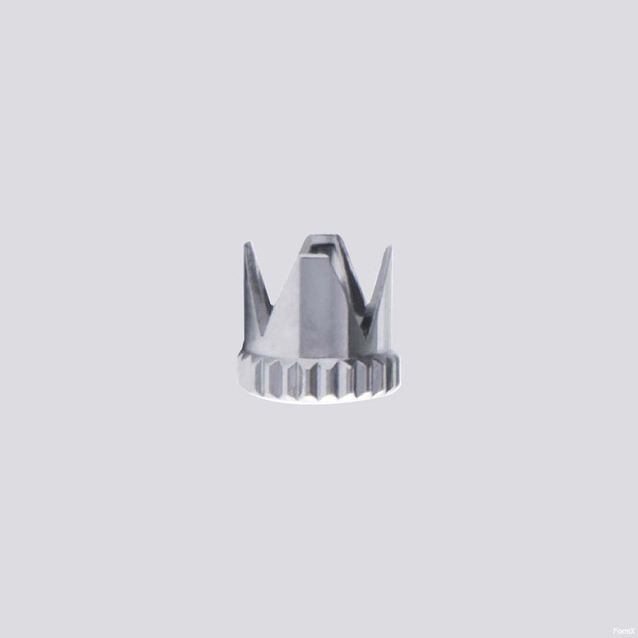 Die Airbrush-Düsenkappe mit Kronenmuster ist eine spezielle Luftkappe mit einem einzigartigen kronenförmigen Design, das über Aussparungen oder Kerben an den Rändern verfügt. Diese Konstruktion bringt zahlreiche Vorteile für die Leistung und Präzision beim Airbrushen mit sich: