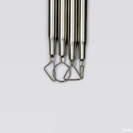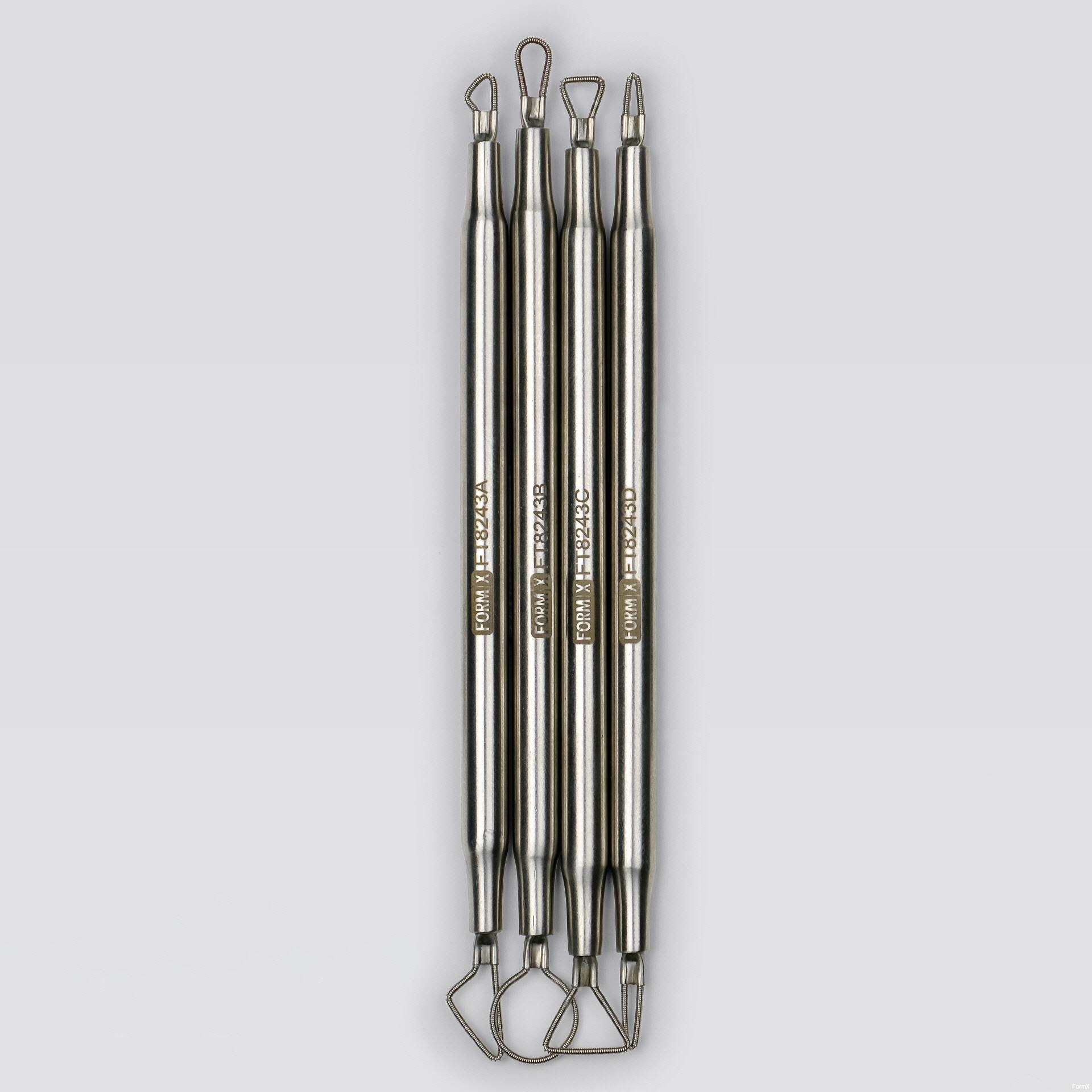 This unique set of sculpture rake tools is designed to refine forms after the initial raking with rougher rakes is done. Made from strong wire inbedded in stainless steel tubing which in turn is placed in sturdy stainless steel handles.