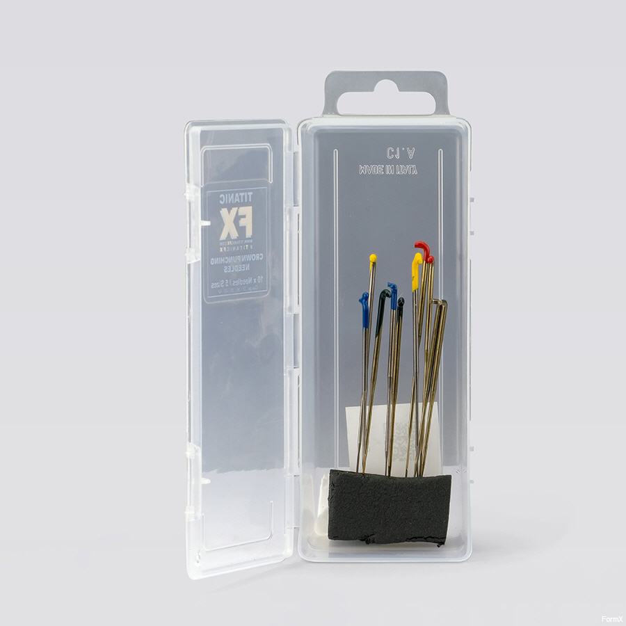 Ein komplettes Set von 10 Nadeln von Titanic FX zum Einstechen von Haaren in Masken und Prothesen aus Schaumstoff, Gelatine, Latex oder Silikon.