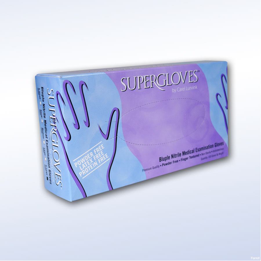 The Supergloves Bluple nitrile disposable glove is made from top quality nitrile. The Bluple nitrile is, despite its smaller thickness (3.2 mil.), Strong and particularly comfortable due to its high finger sensitivity. This powder-free glove has a micro-textured pattern on the finger tips for a very good grip. The Supergloves are non-sterile gloves that can be worn both right and left-handed.