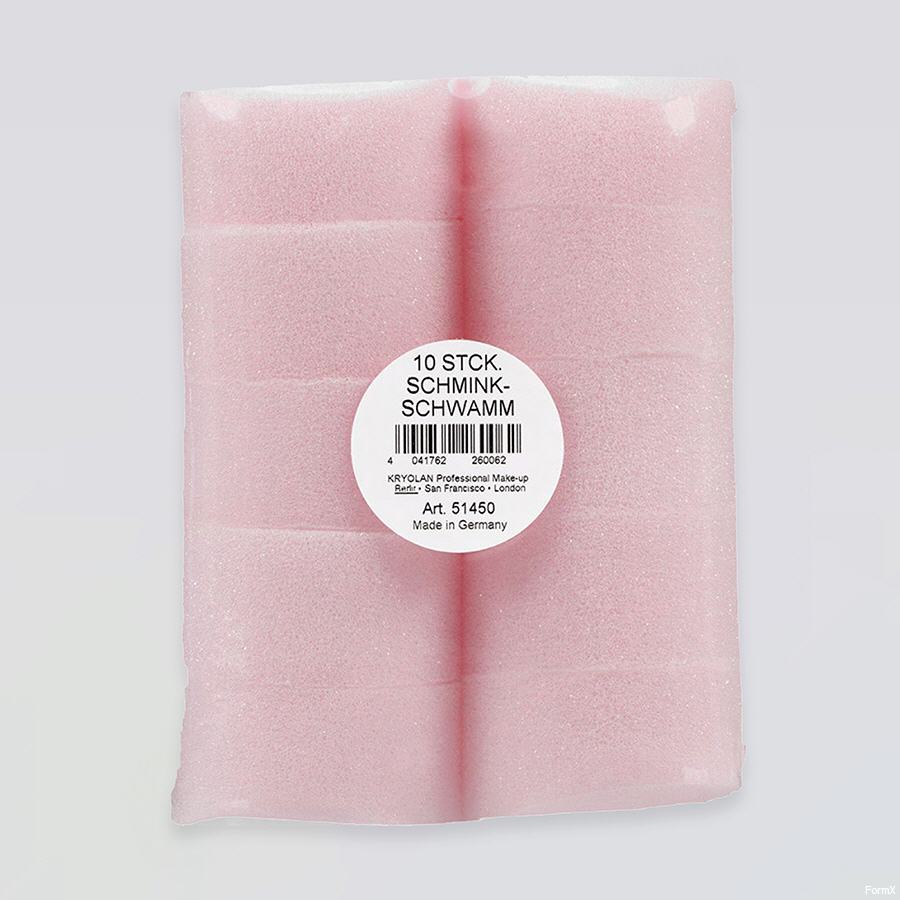 This fine pored make-up sponge of high-quality polyurethane is especially effective for all kinds of wet-applied cosmetics, as well as for cream make-up.